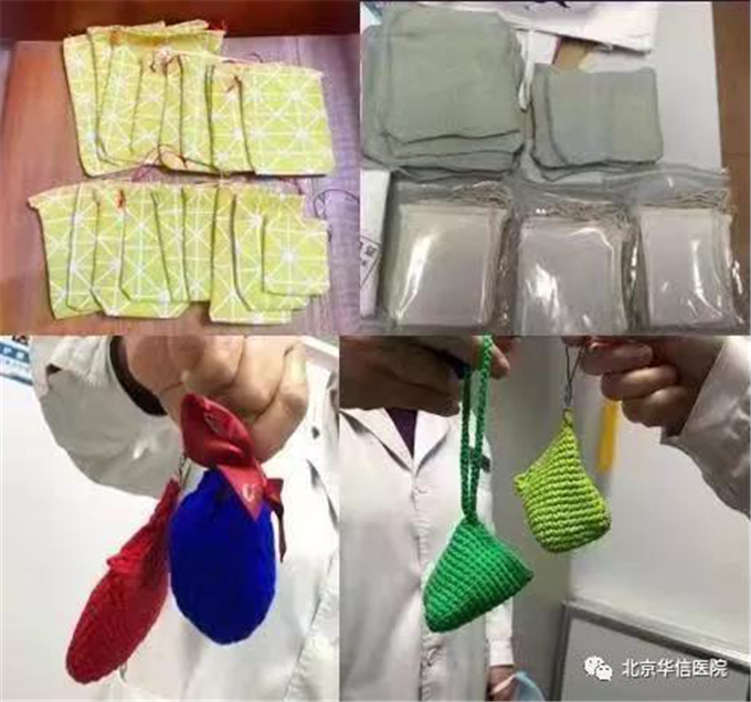 家遠(yuǎn)的同志也沒閑著。由于物流停止買不到袋子,大家紛紛出謀劃策,并且把心靈手巧發(fā)揮到極致。宋玉靜、李晟、張曦元動手縫制了許多可愛的布袋送到了科里。張安為了加快進度,把草藥帶回家打粉、裝袋,并且把家里留給孩子用的精美的小香囊裝好,送給了我院準(zhǔn)備支援湖北的醫(yī)療隊員們,讓他們帶著中醫(yī)科同事的一份守護奔赴疫情前線。從初五到初七,科里唯一的小伙子張治博每天主動來科里和值班的同事一起制作避疫香囊,從訂帶、打粉到裝包,每個環(huán)節(jié)都不落下。全科每個同志凝聚成一個整體,團結(jié)一心,協(xié)同合作,大家分工明確,互幫互助。春節(jié)期間,在完成本職工作的同時,趕制了近千個避疫香囊,分發(fā)給醫(yī)院里一線的同事們。