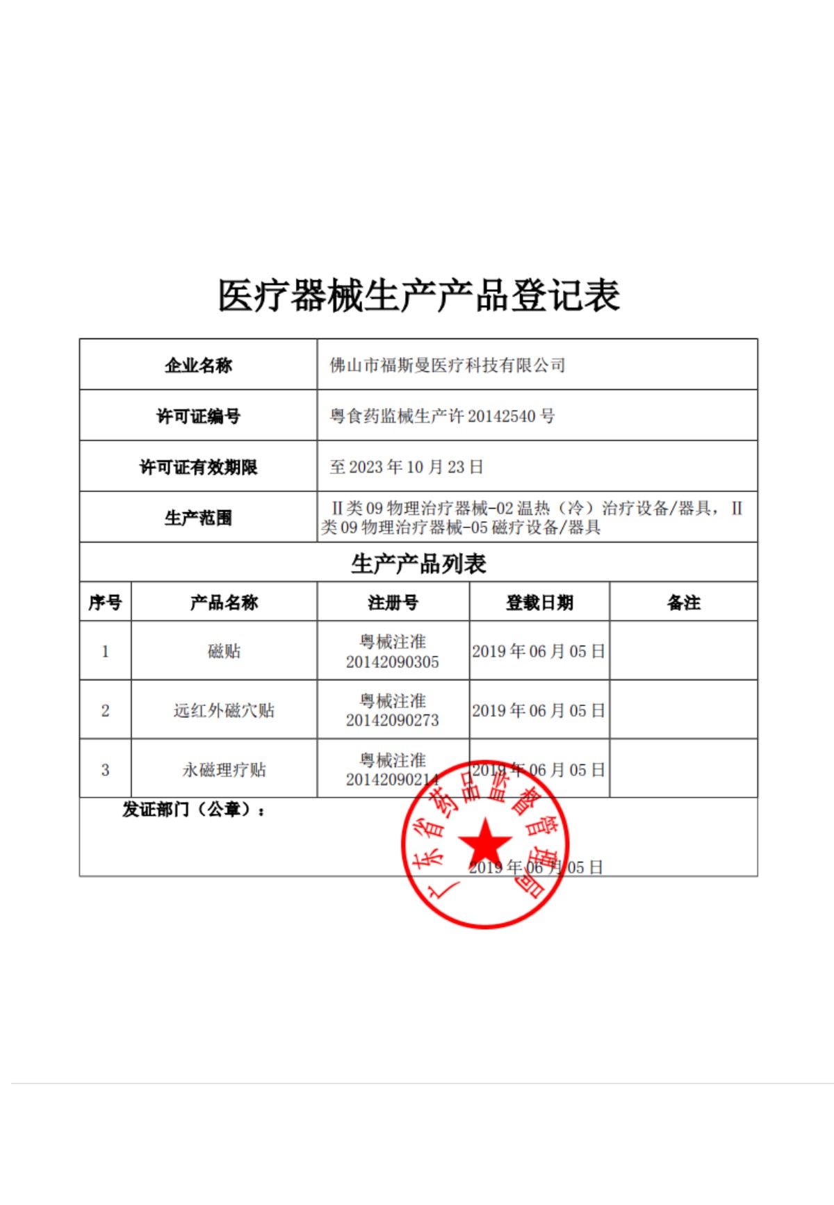 醫(yī)療器械生產(chǎn)產(chǎn)品登記表