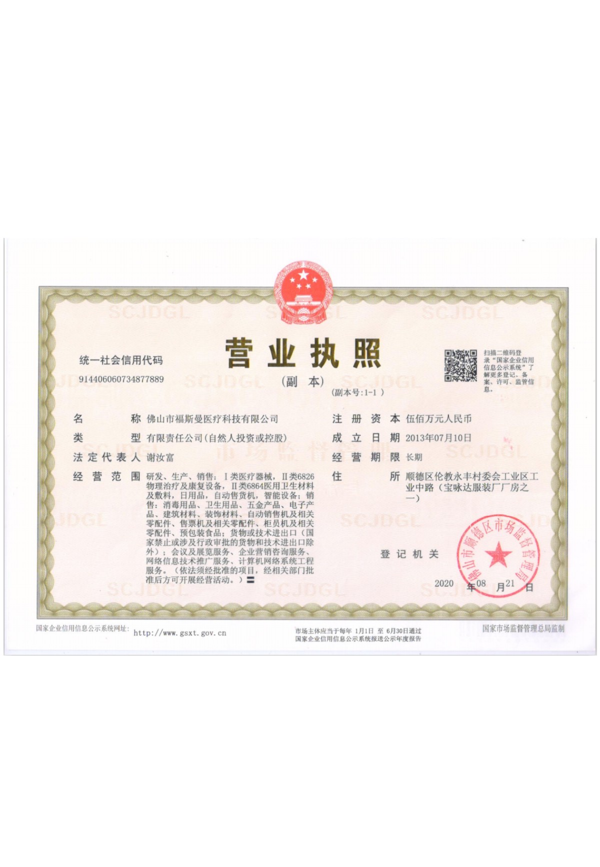 醫(yī)療器械注冊(cè)證