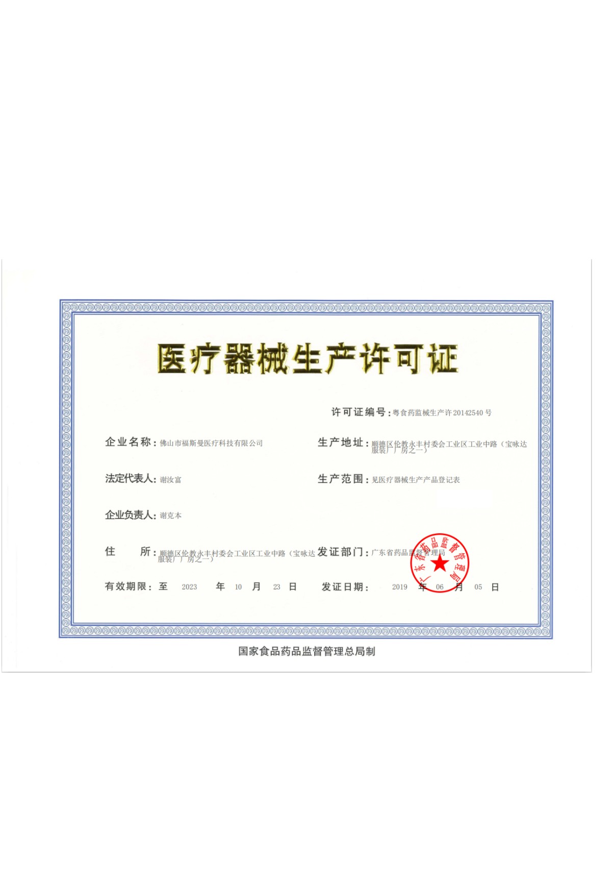 醫(yī)療器械生產(chǎn)許可證