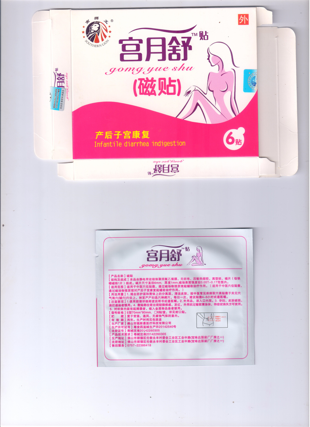 揭去防護層和膏體上的分離層,清潔皮膚,按中醫常見疾病取穴表貼敷于關元穴氣海穴(輔穴)穴位上,剖宮產產婦選穴神闕穴,每日一次,建議貼敷4-6小時或遵醫囑。