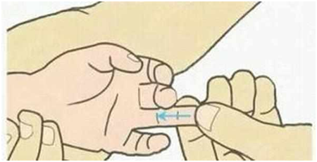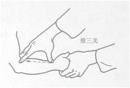 第三,除了在手指的位置有治療咳嗽的穴位以外,在手腕上同樣有可以緩解這一癥狀的穴位,這就是我們常說的“推三關”。三關位于前臂靠大拇指那一側成直線狀,操作手法為用食中指從手腕向手肘推300次。