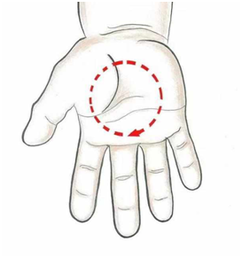 另外,寶寶如果咳嗽時間長了,不免會有痰產生,這時候可以用“運內八卦”的穴位按摩方式進行操作,即以圓心至中指指根橫紋內2/3處為半徑畫圓,順時針方向操作300次即可。